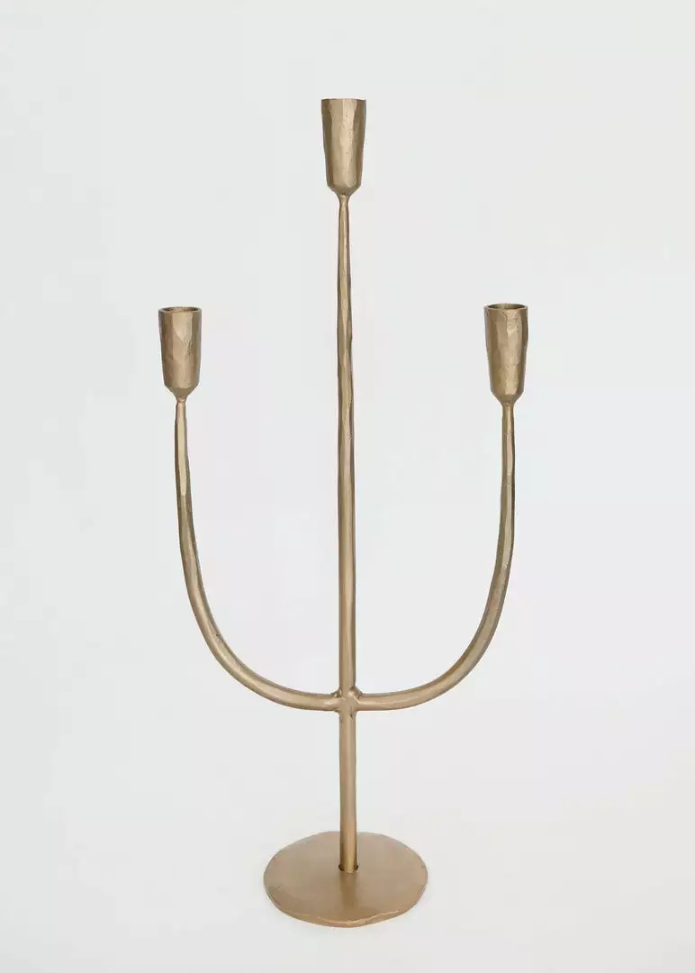Find candle holders for your table centerpieces like this beautiful metal candelabra with an antique gold finish. It has a simple, classic look that elevates both wedding tablescapes and holiday decorations.
