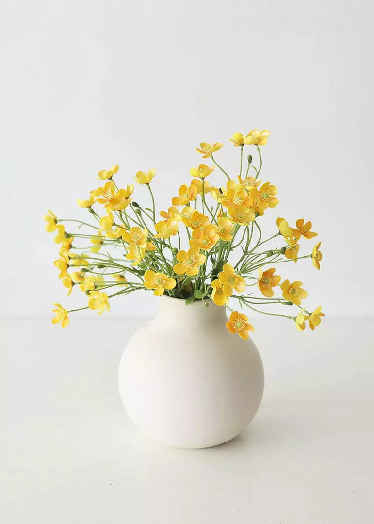 Sweeten your faux floral designs with the cheery feeling of spring using these beautiful yellow artificial buttercup flowers. The precious, little blooms make these buttercups perfect for filling in centerpiece arrangements and wedding flower bouquets.