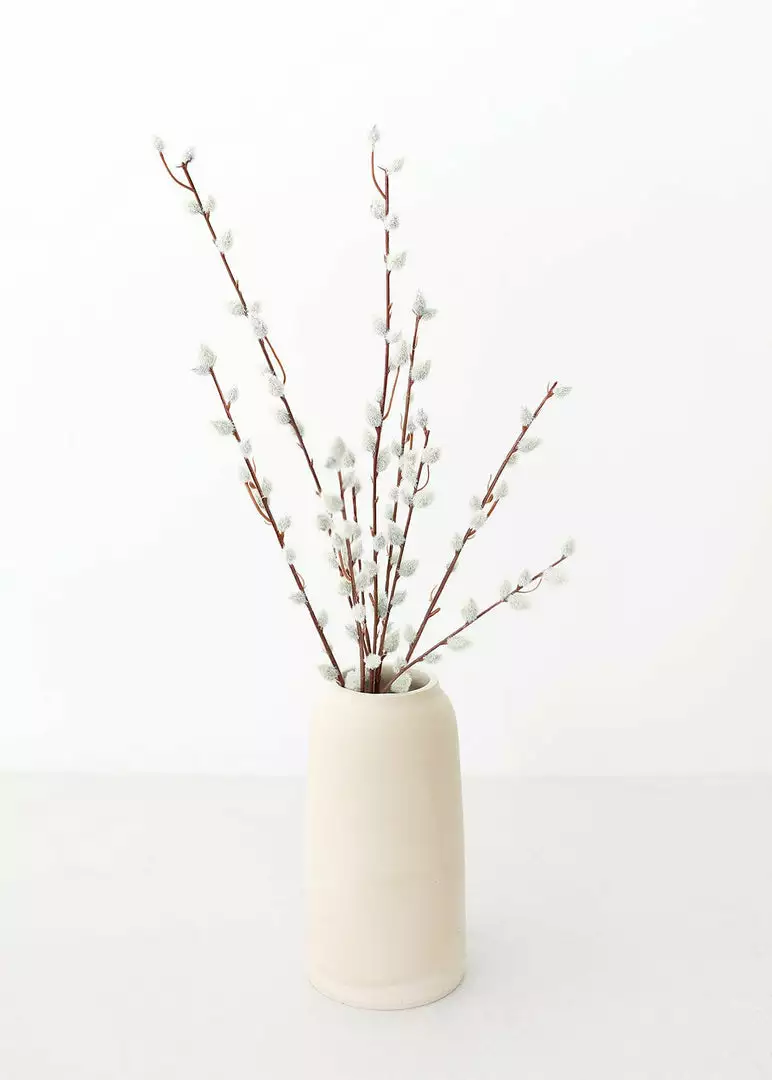Modern, minimalist, and perfect for any space, these grey artificial pussy willow branches are just what your home decor needs. Style them in a tall branch vase for a simple clean look. These artificial pussy willows feature realistic, fuzzy buds and the fully-wired stem allows for easy shaping to create the look of natural pussy willow banches from every angle.