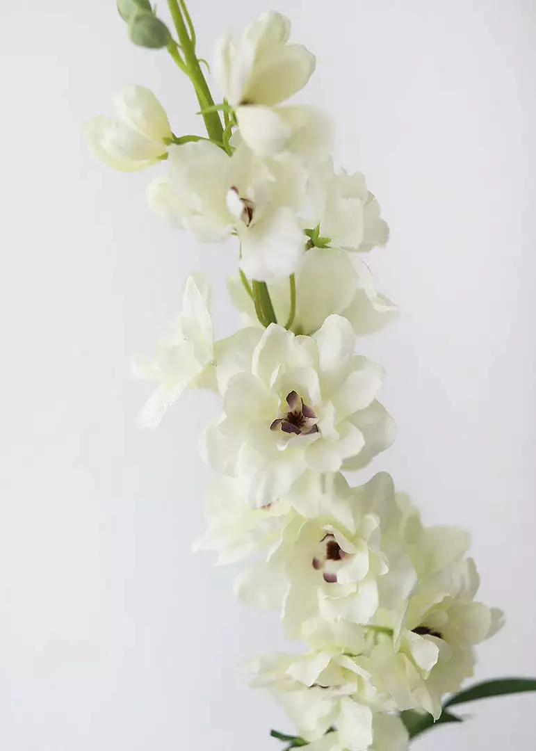 Find cream artificial flowers, like this gorgeous cream faux delphinium larkspur spray. This delphinium wildflower looks stunning in a tall vase arrangement, or add intricate detail to your classic wedding bouquet!
