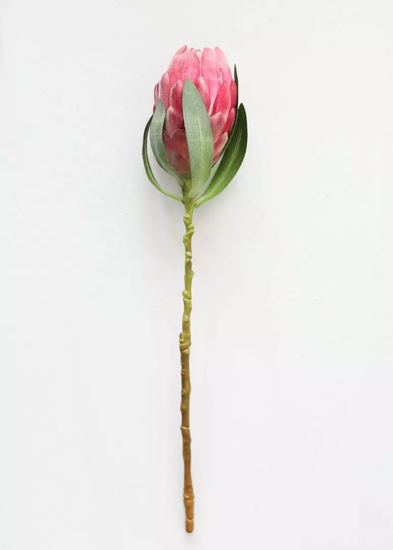 Find high-quality tropical fake flowers, like this stunning fuchsia pink protea bud stem. It’s the artificial bloom you need to make any floral vase arrangement or flower bouquet pop.