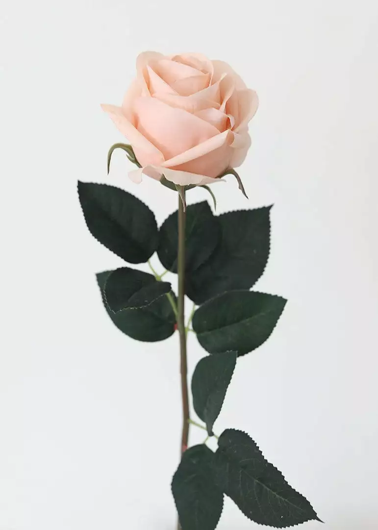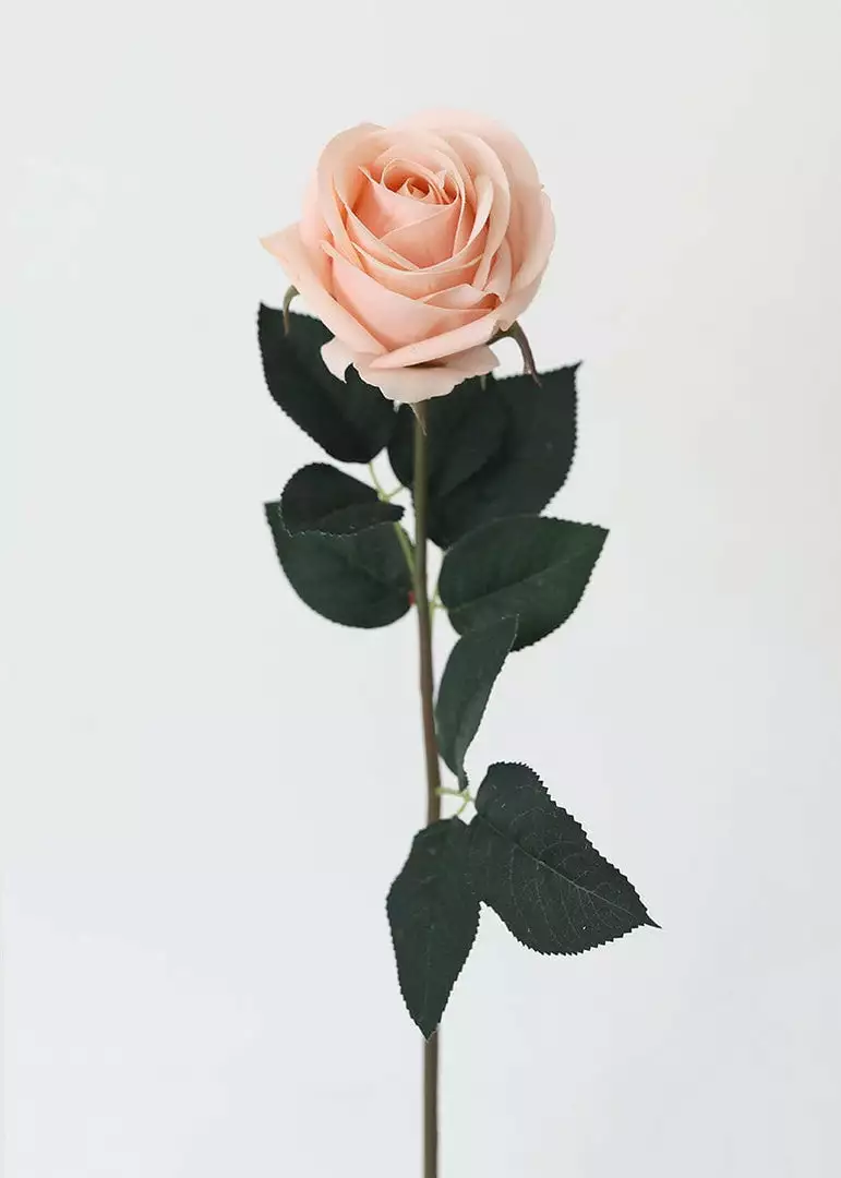 Create beautiful artificial flower arrangements with real touch botanicals like this elegant rose stem in light pink. Simply style faux roses in your vase to design a clean, sophisticated look.