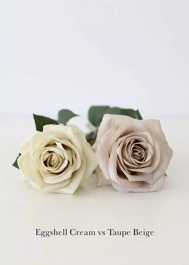 Make this taupe beige artificial rose stem the star of your floral designs to showcase its realistic petals and impressive attention to detail. Simply style these fake roses in a wedding bouquet or a vase to create a perfect fall flower arrangement in an elegant neutral hue inspired by nature.
