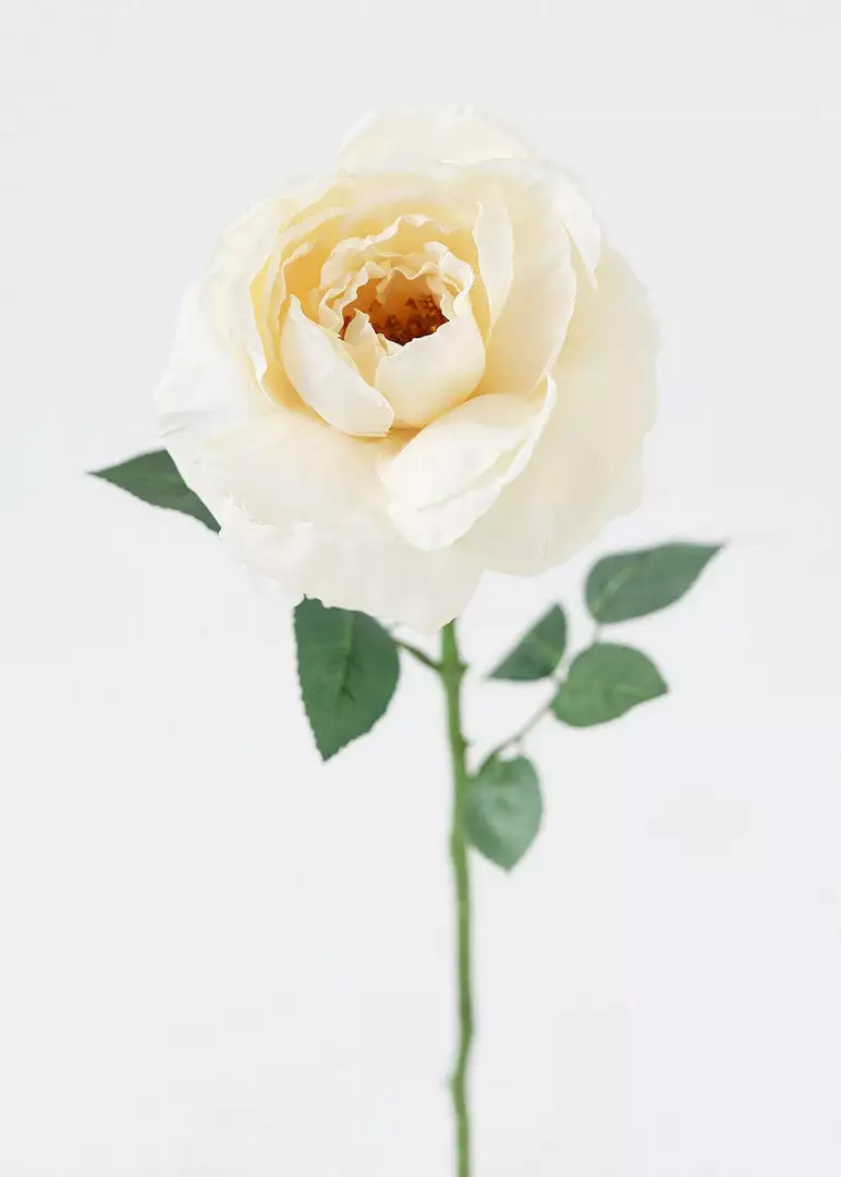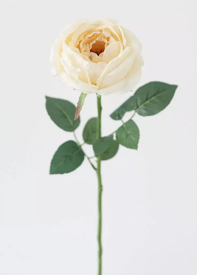 Gorgeous faux garden cabbage rose stem in buttercream. Give your wedding designs a classic and elegant look with this stylish artificial ivory cream garden cabbage rose.