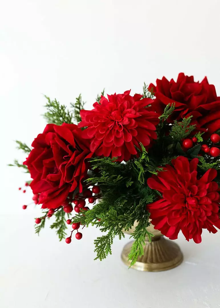Get artificial red winter berries for your holiday bouquets and Christmas centerpieces, like this adorable red berry spray with green leaf accents. These cute red berries are the perfect way to add a pop of festive color to any design!