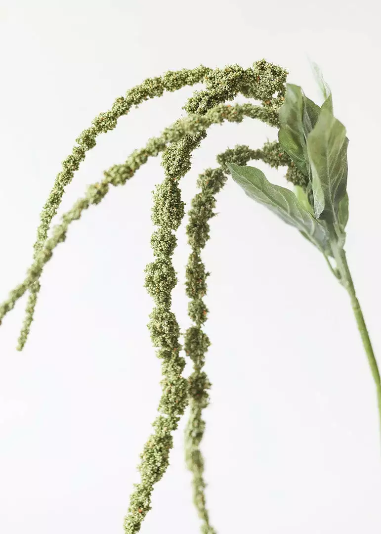 Gorgeous amaranthus spray in vivid green. Also known as a summer poinsettia, this green amaranthus adds texture to hanging centerpieces and cascading wedding bouquets.
