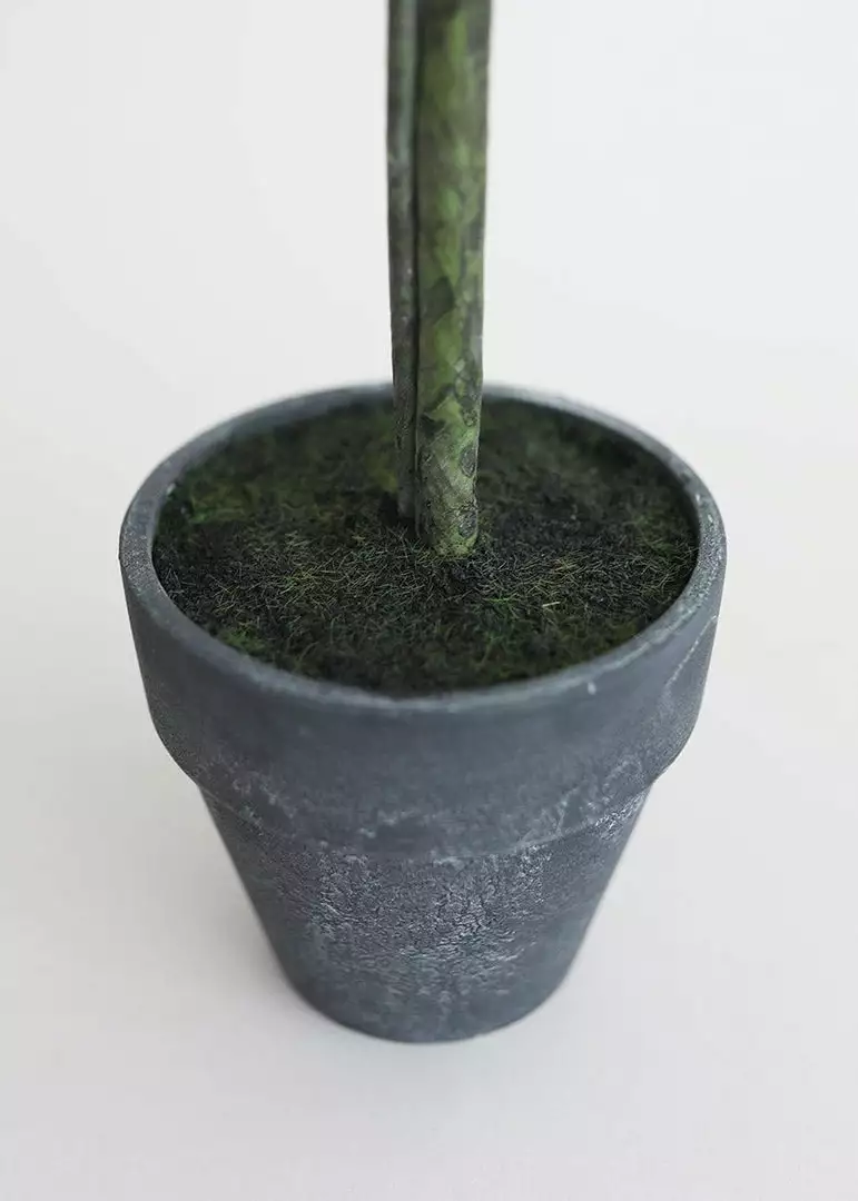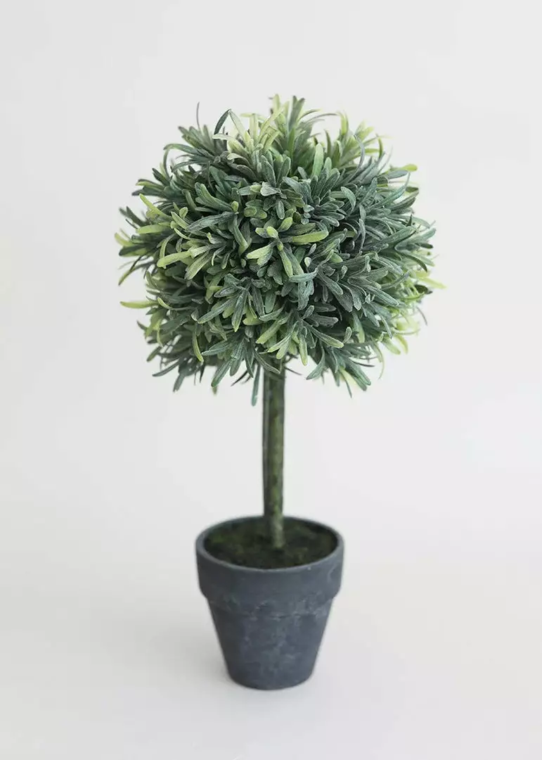 Find trendy artificial potted plants for home decor, like this two tone green fake rosemary herb leaf topiary ball tree in a black pot. It’s the perfect choice for a plant that stays beautiful without sun and water.