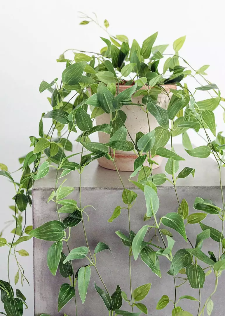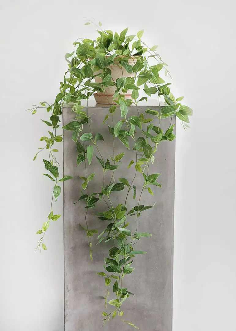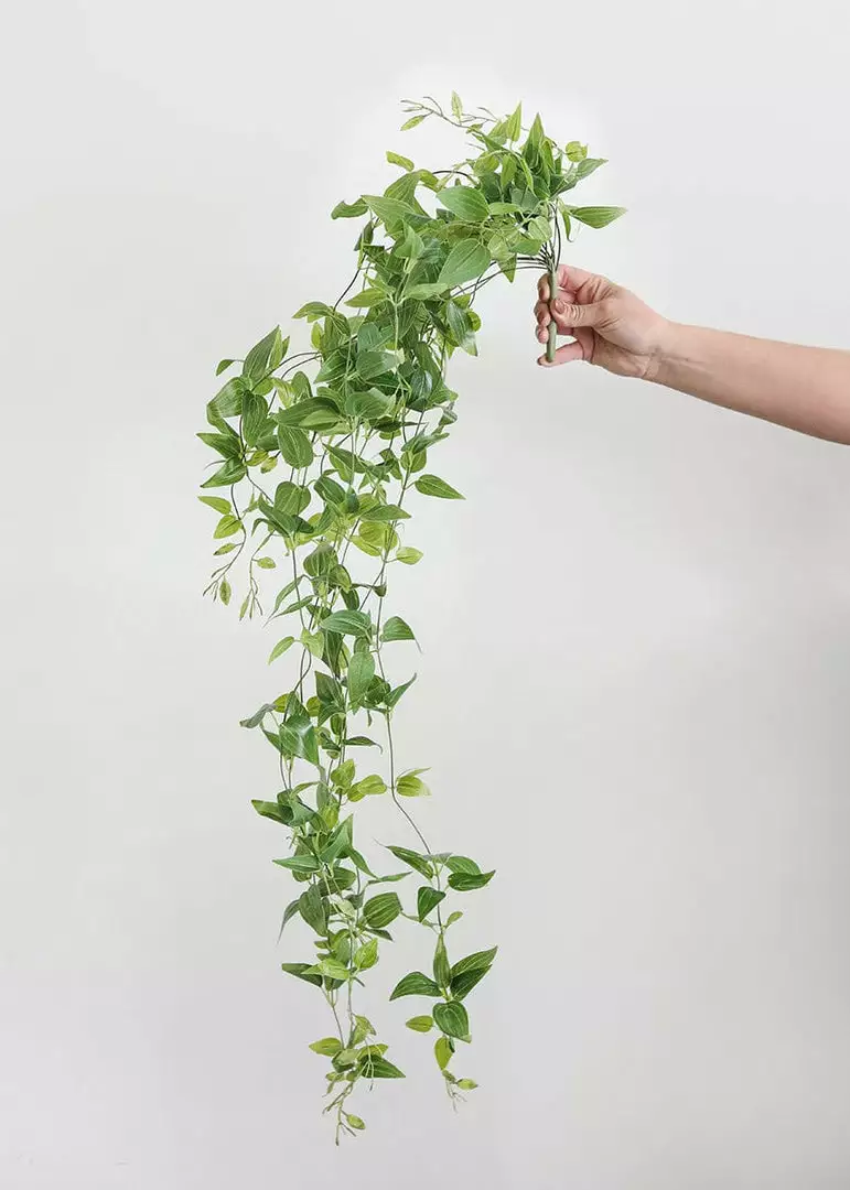 Find artificial hanging house plants that need no care to keep your living space bright and fresh! This fake soft touch tradescantia hanging plant with trailing leaves will look gorgeous in a basket or a planter. Item will arrive flat in packaging. Simply bend the stems and fluff!