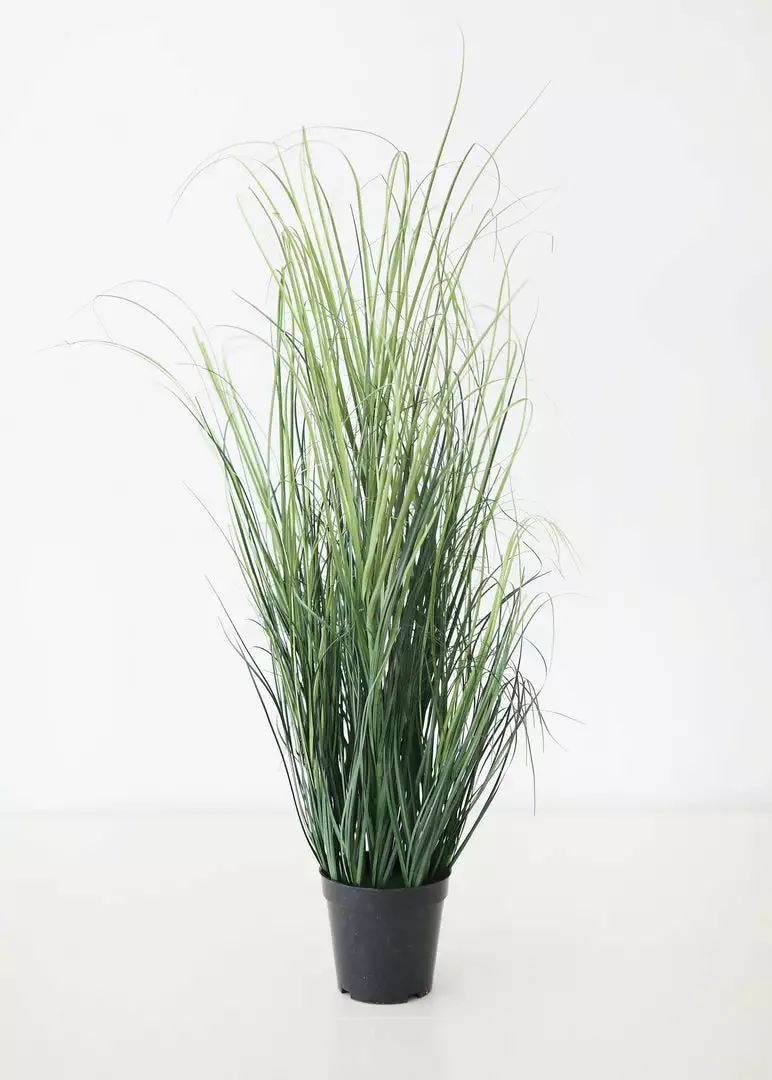 Find fake potted plants that never need sun or water, like this lush green grass bush in a plastic pot. No matter if it lives on your porch or in your home, this artificial plant makes any space brighter.