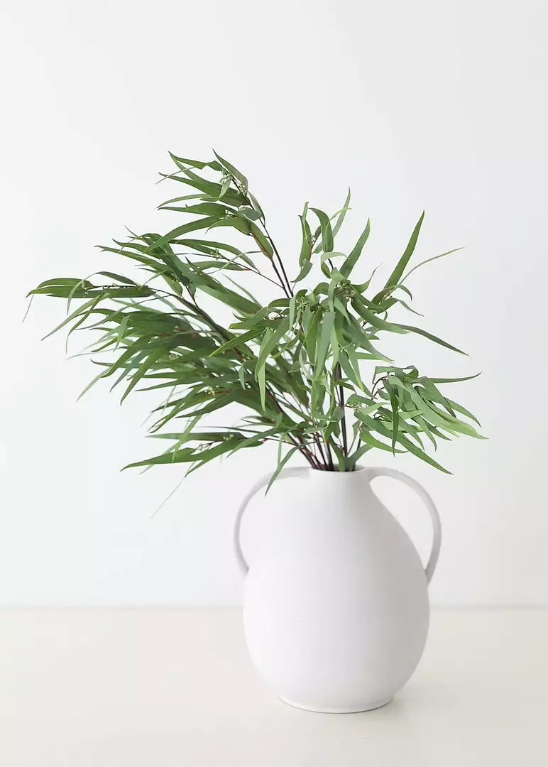 The hassle-free approach to vase styling starts with artificial green leaf branches that last, like this large seeded eucalyptus branch. Choose these gorgeous, soft plastic fake leaves to create your simple but striking arrangement.