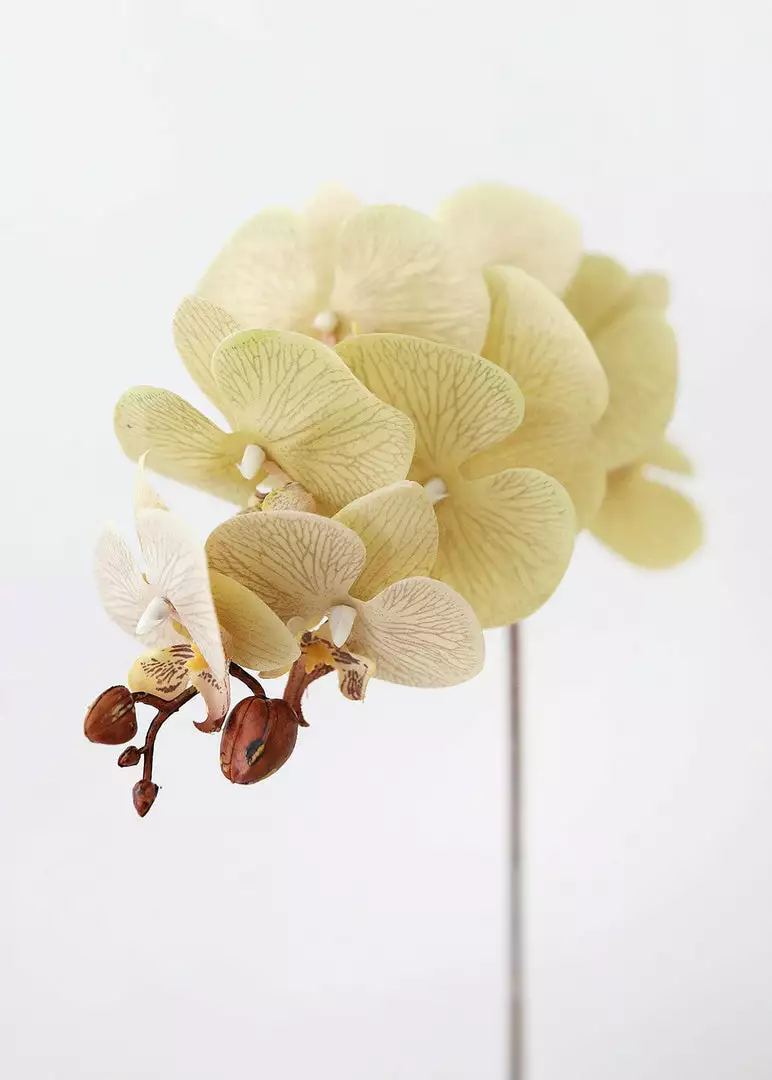 For the perfect tropical touch, add artificial orchids! This beige fake phalaenopsis orchid flowers spray offers the most elegant neutral color that instantly elevates the look of your vase arrangements or wedding centerpieces.