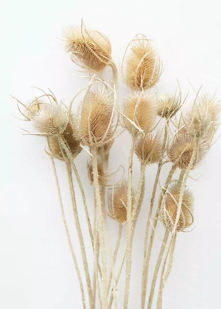 Elevate your dried floral designs and wildflower bouquets with natural botanicals like beautiful, neutral dried Chardon thistles. These flowers were naturally grown and harvested on a sustainable, solar-powered flower farm in the Netherlands.