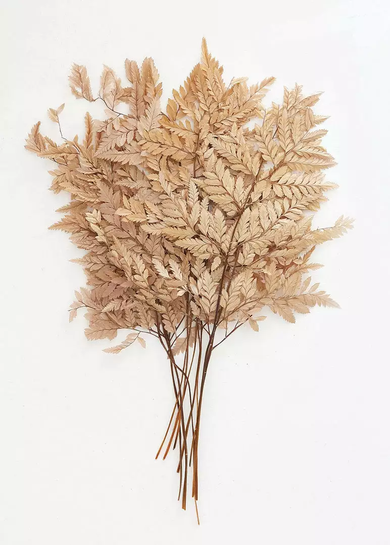 Give your natural floral designs a touch of nature with these tan taupe delicate preserved fern leaves. The earthy neutral tones in these elegant leaf accents add an elevated look to dried flower bouquets and arrangements. Naturally beautiful leaves, each one is unique.