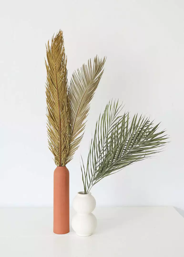 Create the boho home decor of your dreams with this dried natural cycas palm leaf. Simply add this large dried palm leaf to a tall vase, hang it above your mantle or bed frame, or style it in a dried flower floor arrangement for your boho wedding! This palm leaf is naturally beautiful, each one is unique.