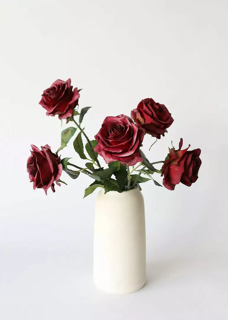 Find faux bouquet flowers for your wedding, like this gorgeous burgundy artificial rose stem. It’s the perfect choice to add a spot of rich color.