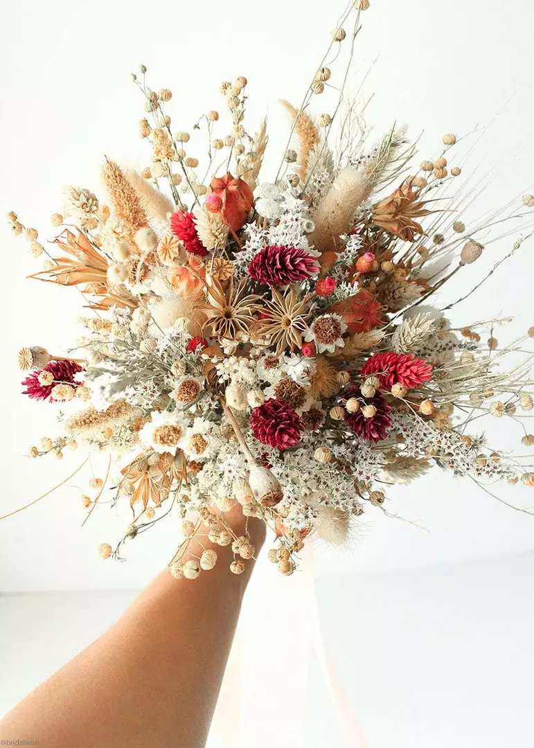 Elevate your floral styling with nature’s stunning botanicals. This natural phalaris grass dyed in a gorgeous pink burgundy hue adds rich color and texture to dried arrangements and wedding flower bouquets alike.