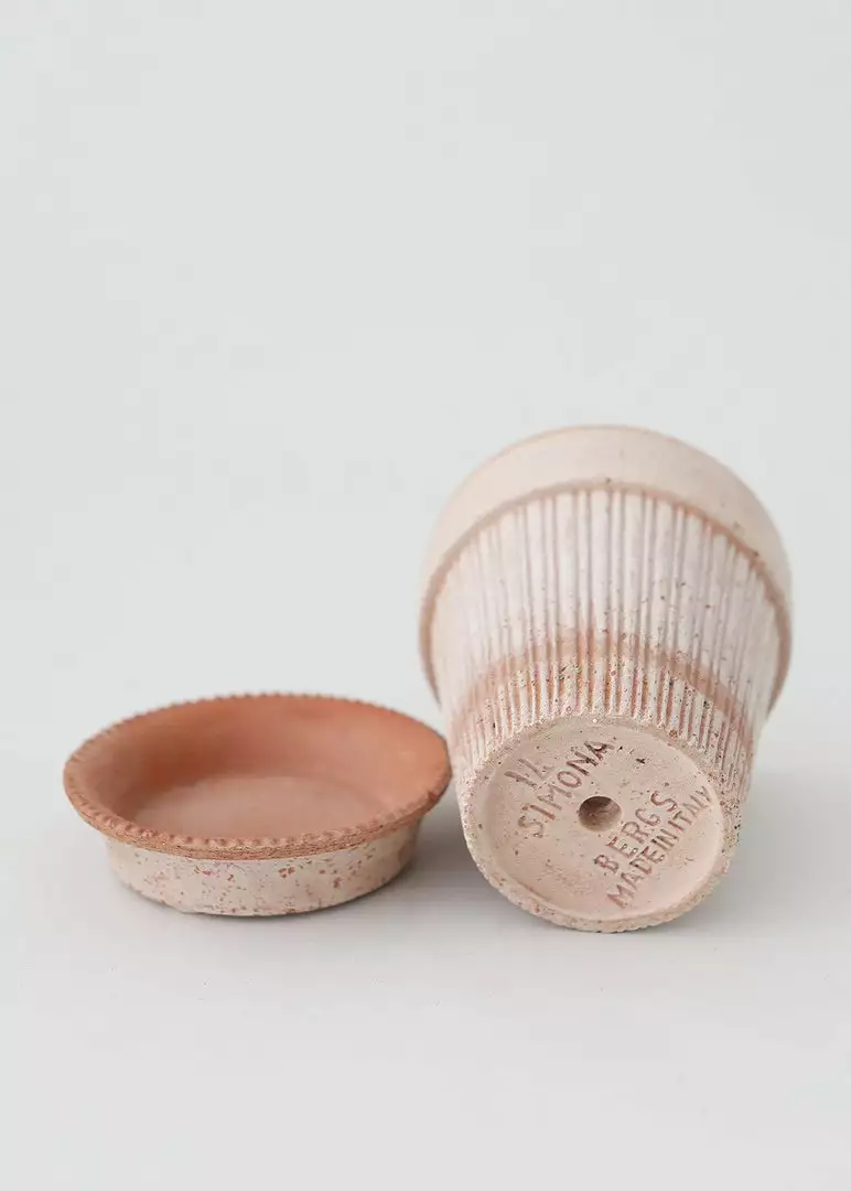 Bergs Potter’s pots are carefully handcrafted to give your live plants the perfect place to grow. Incorporating time-tested techniques and classic design, the Simona planter is made for your indoor and outdoor gardens. Saucer included. Each planter is handmade and will vary slightly. NOT Frost Proof, store inside during winter months. Whitewash terracotta clay is porous, color will darken when saturated with water.