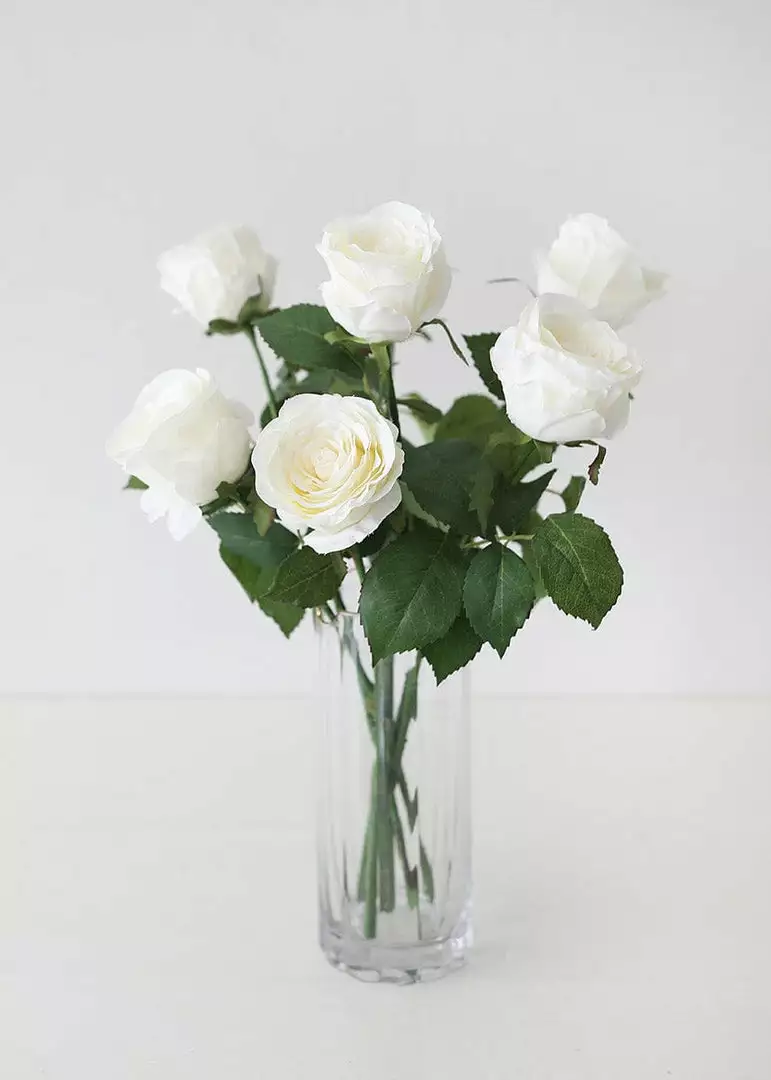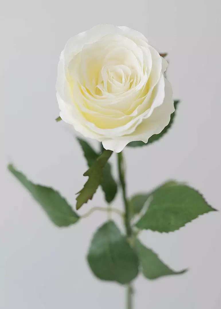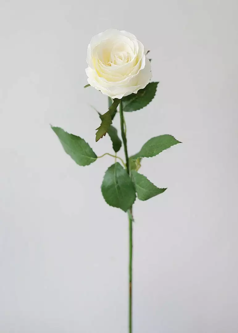 Enjoy the beauty of a rose year-round, with this artificial cottage rose stem in cream white. Elegant and timeless, this faux rose will be sure to fool the eye. With just the perfect tint of off-white, this cream artificial rose will add the softest and most versatile touch to your floral arrangements and centerpieces.