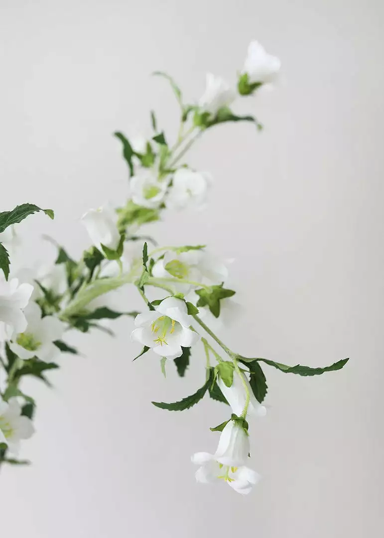 The name of these elegant florals says it all – these cream white artificial campanula bellflowers are shaped like a bell, of course, offering a vibrant green and yellow interior detail. With a slightly flocked stem, the natural detailing of these flowers mimics nature to the highest degree.