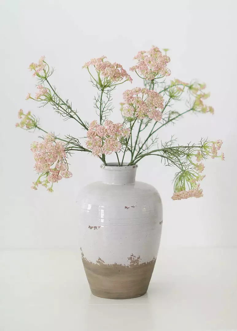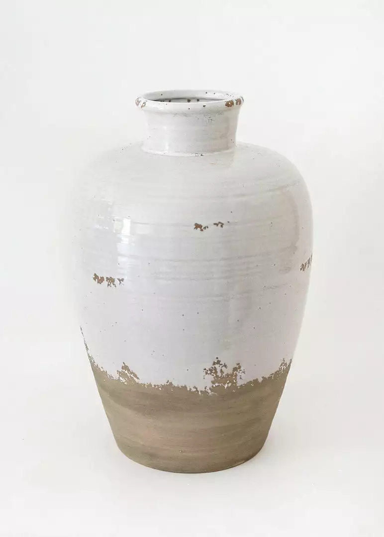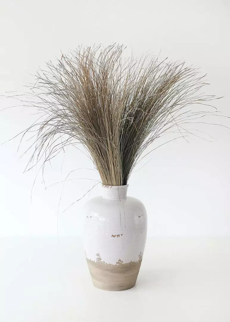 Looking for large and tall floral vases? This dipped ceramic jug vase in distressed white and tan terracotta color is the one for you. It’s the perfect vessel to showcase dried grasses.