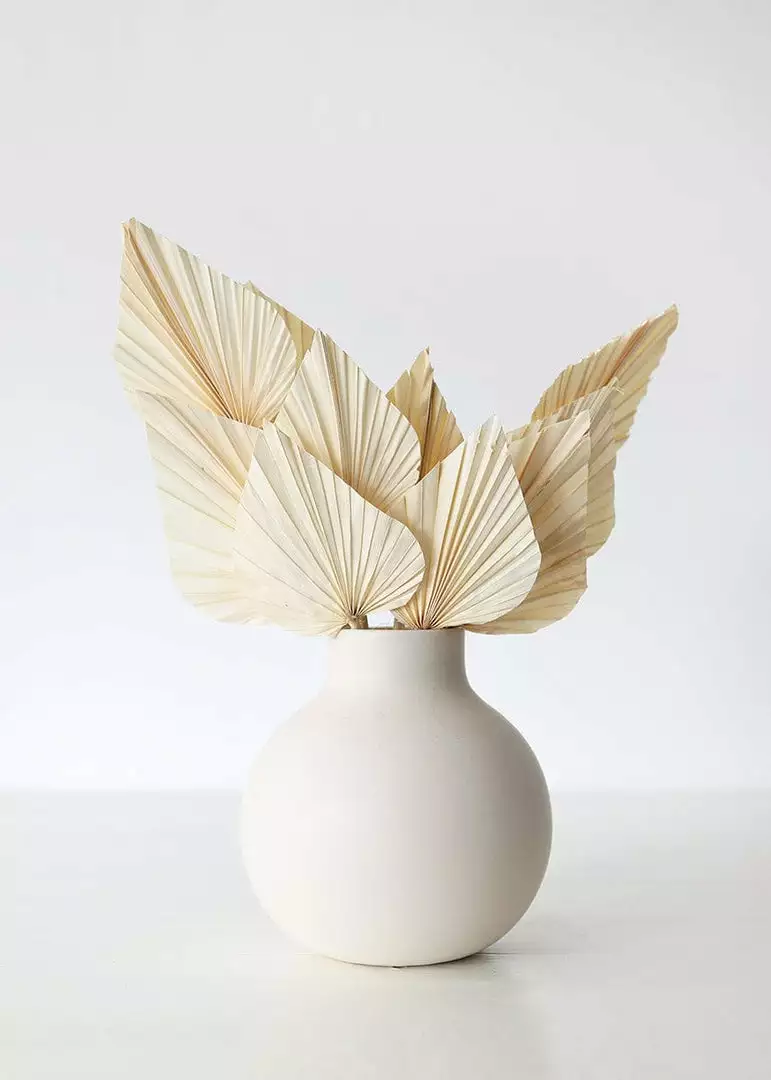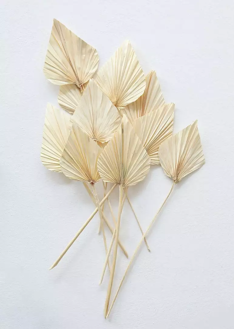 Simple, stunning vase styling for nature-inspired home decor starts with these perfectly neutral palm spears in bleached white. A small, sustainable flower farm in the Netherlands naturally grew and dried the palms, then hand-assembled them into a unique, one-of-a-kind bundle.