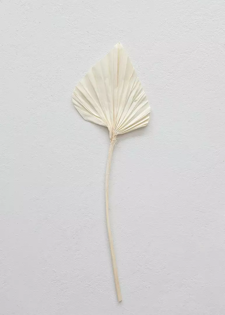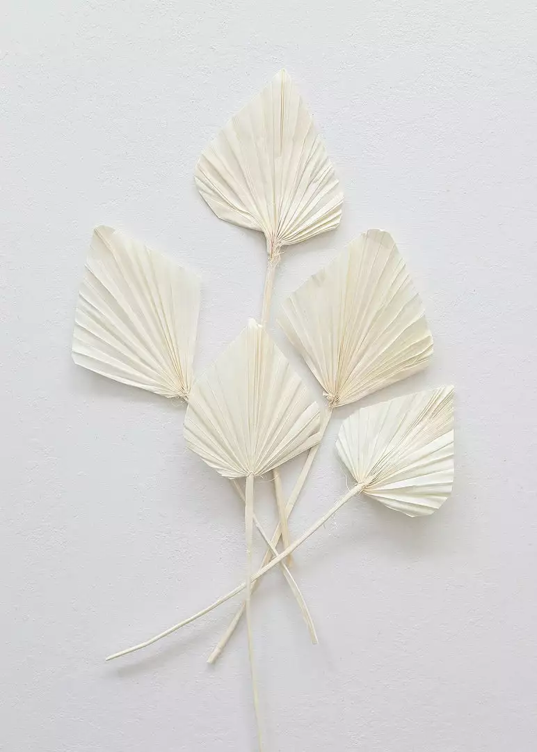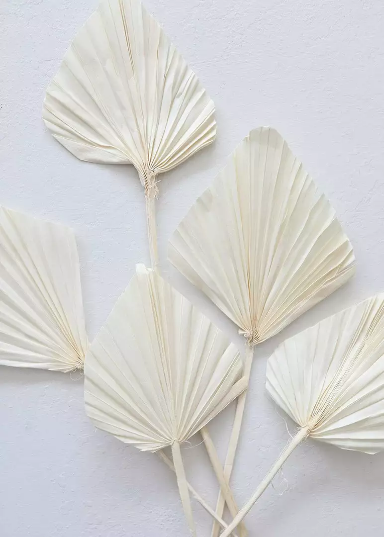 Create stunning tropical floral arrangements reminiscent of a breezy day on the beach with these unique bleached palm spears in cream. These palms are great for adding architectural interest to any design. Each palm is natural and unique, color and size may vary.