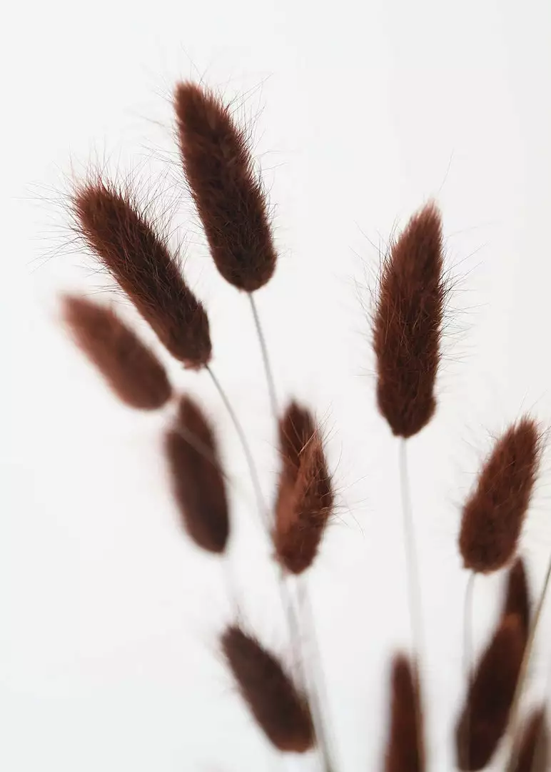 Trendy vase styling calls for nature’s natural beauties. Simply add this chocolate and walnut brown dried Lagurus bunny tail grass to a bud vase for an elevated neutral look.