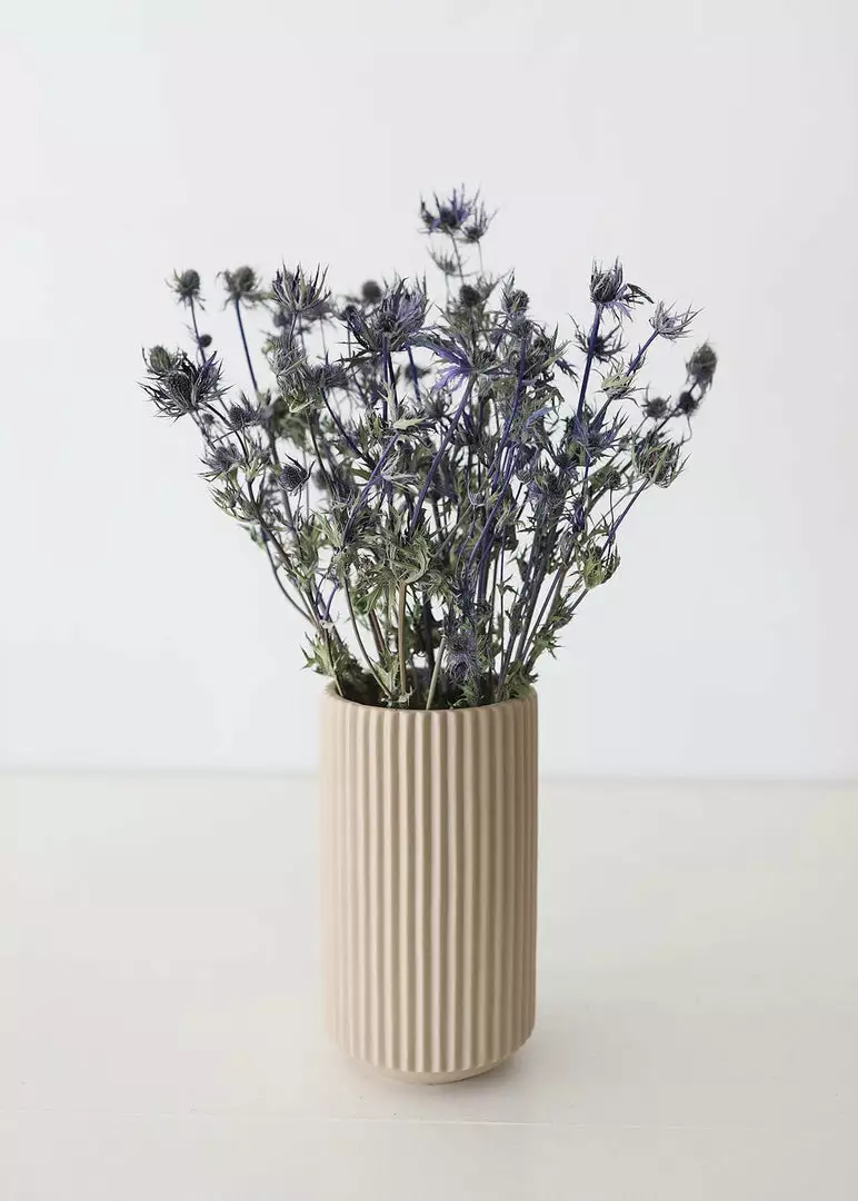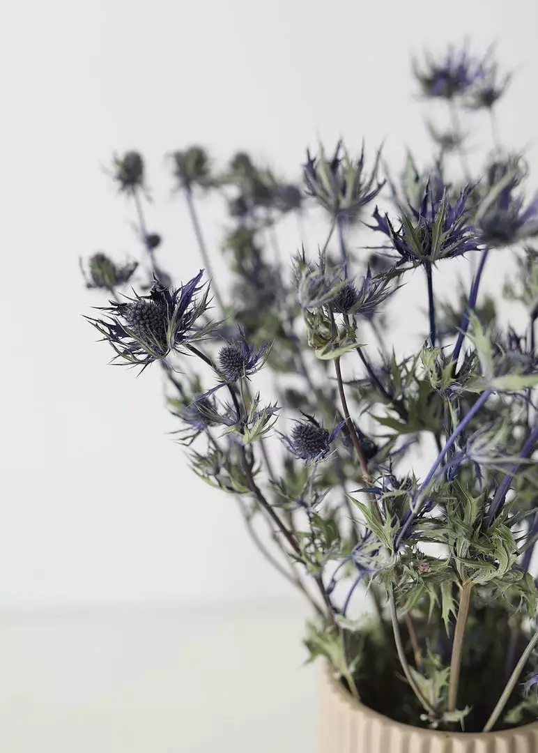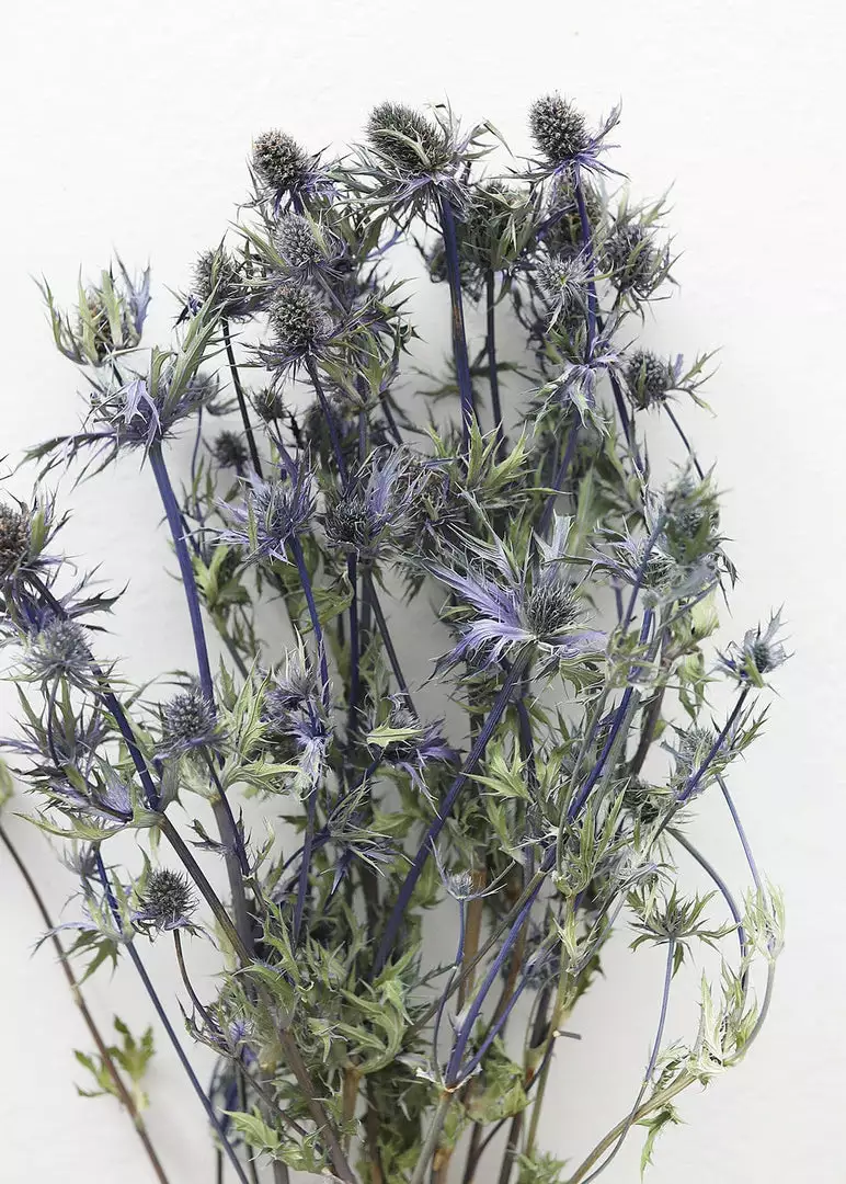 Elevate your vase styling with naturally beautiful botanicals. This fresh from the field blue star sea holly thistle was grown, harvested, and dried on a solar-powered farm in the Netherlands.