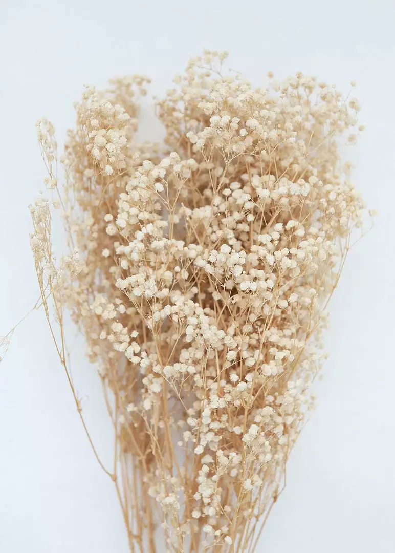 Welcome the feeling of nature into your dried floral arrangements or flower bouquets with this soft, delicate ivory cream flower bundle of preserved baby’s breath. These lovely gypsophila filler flowers give any design classic beauty.