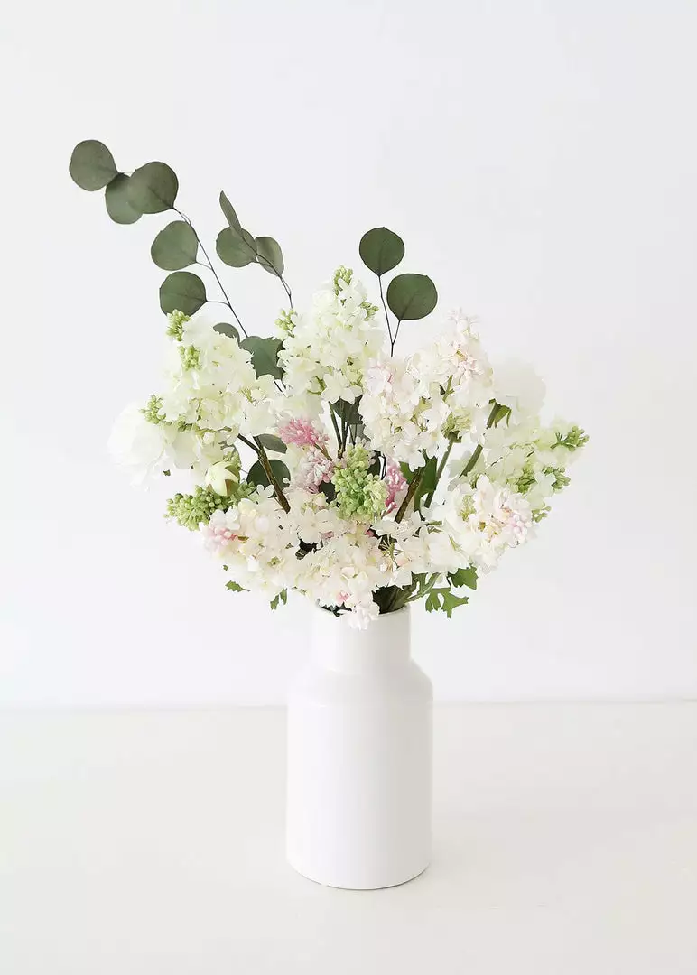 Simply chic ceramic floral vase in white is going to be your favorite choice for styling arrangements. Create a beautiful look with dried flowers or fake flowers.