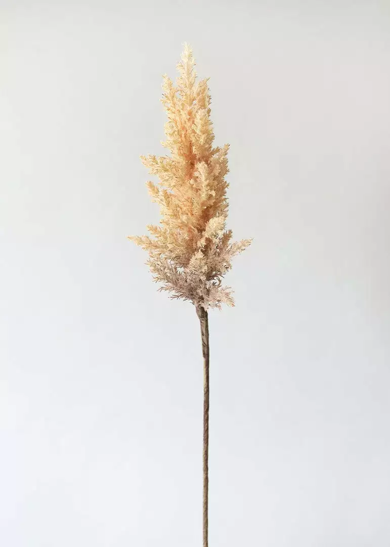 Take a simple approach to fall home decorating with tall, artificial grasses inspired by nature. This perfectly neutral tan fake pampas grass stem is beautiful alone in a vase or styled in an autumn flower arrangement.