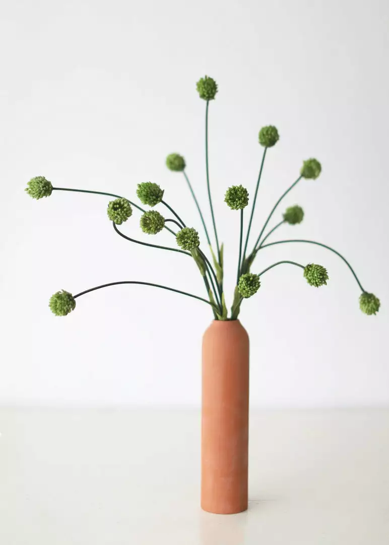 Mix in some unique color and texture with these fake wildflower alliums in a fresh avocado green with notes of pistachio and cream white. With a fully-wired stem, you can shape and bend this trio of alliums to add structure and height to your faux floral arrangements. Pairs well with pale yellow, and plum tones – Shown styled in a 13.5″ tall vase.