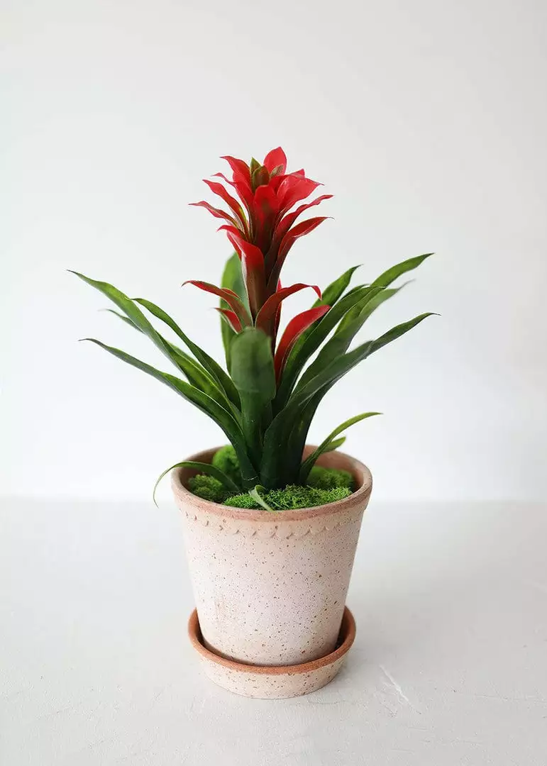 Create an outdoor oasis, without the hassle! Simply plant this affordable artificial bromeliad plant directly in the ground or a planter to get the look that lasts. Line your sidewalk, add to floral planters for a pop of color, or plant alone for a striking, yet simple outdoor artificial accent.