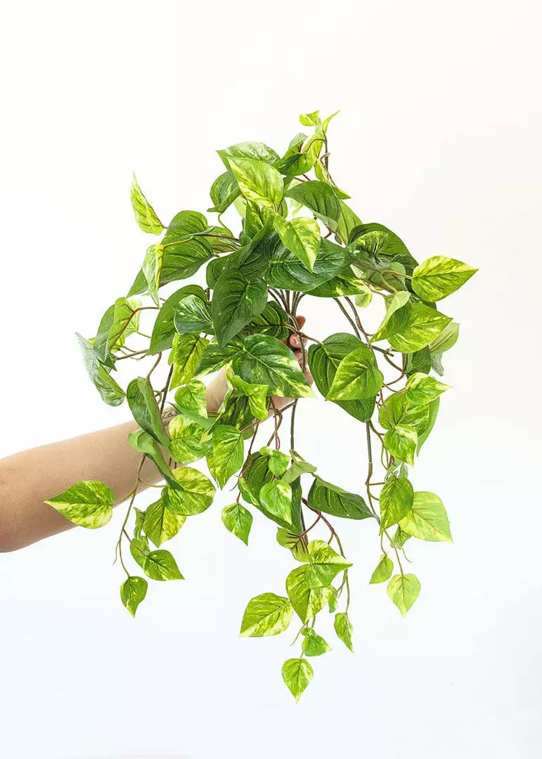Decorate your home and outdoor space with this artificial Pothos plant in green with white accents. No hassle or fuss with this UV protected Pothos.