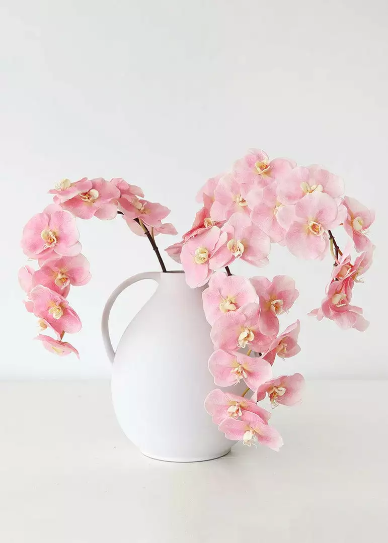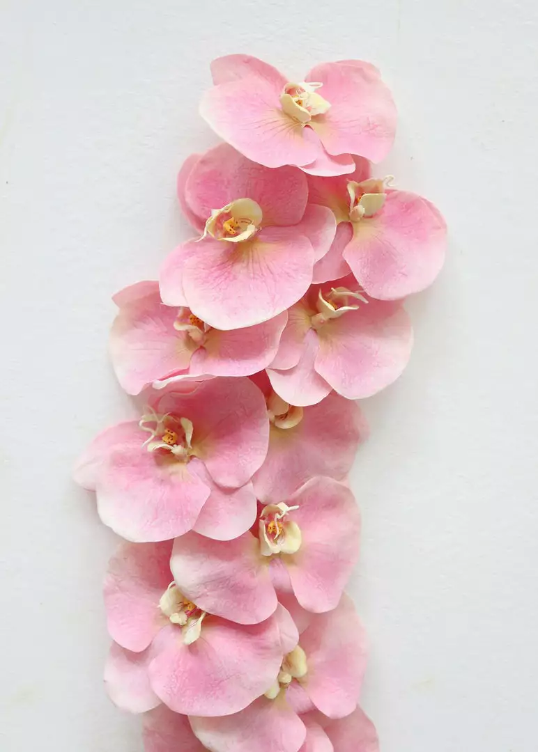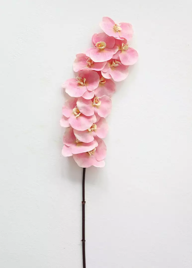Find artificial tropical flowers, like this fake, large real touch phalaenopsis orchid spray in beautiful pink. So realistic, these soft touch orchids make both your everyday vase decor and wedding centerpieces exceptional.