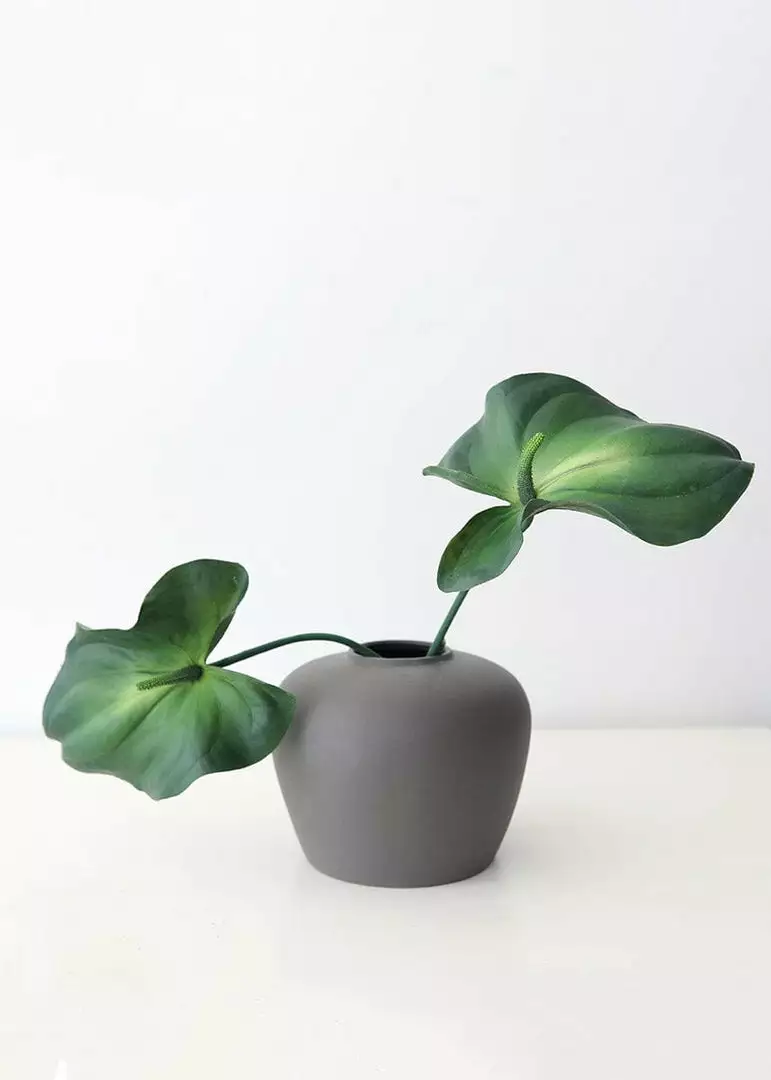Find artificial tropical leaves for trendy home decorating, like this striking green large anthurium stem. It’s so simple to style this fake leaf in your tall vase for a modern look that lasts.