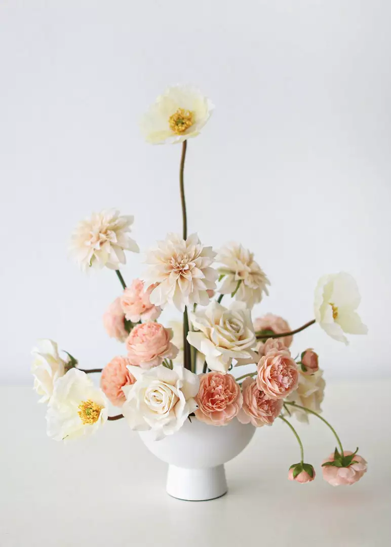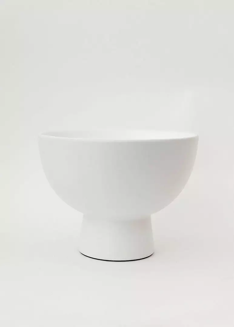 This large ceramic compote bowl in white is the perfect vessel for your classic wedding centerpieces. Any artificial flower arrangement is going to look stunning in this clean, simple, and sophisticated vase.