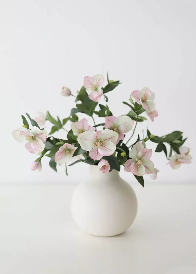 So delicate and pretty, this light pink artificial helleborus spring flowers spray is perfect to bring a bright and refreshing look to your floral designs. Add these silk hellebore blooms to vase arrangements or bouquets.