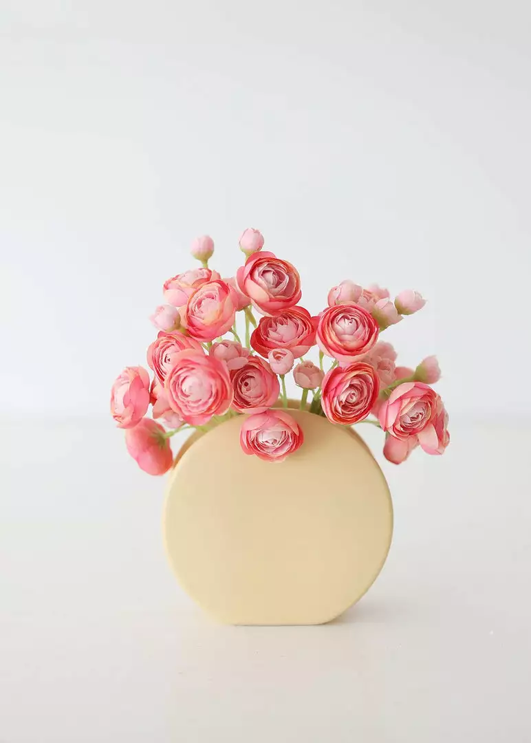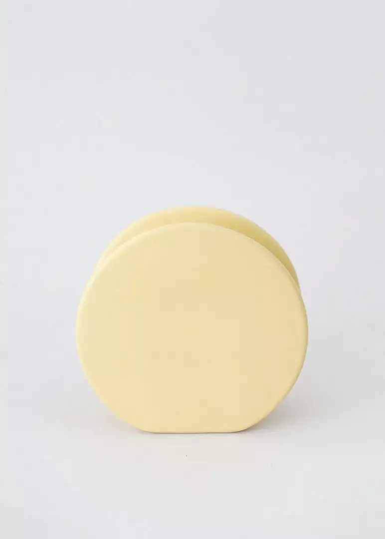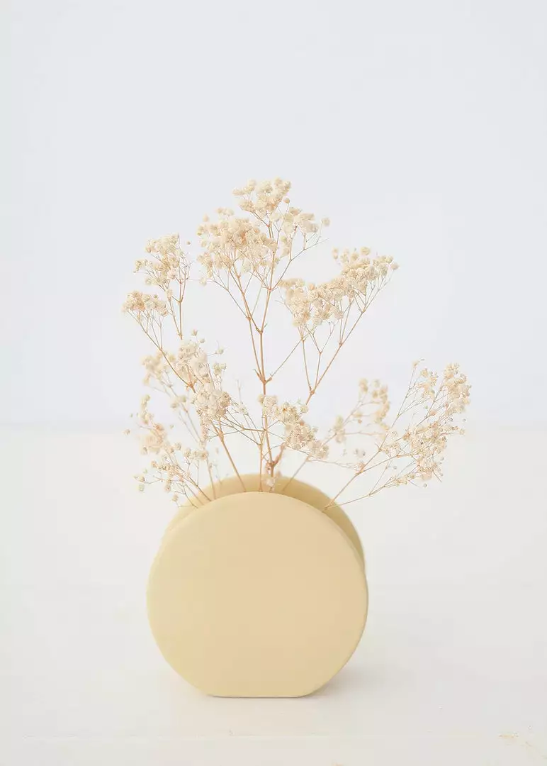 Find vases for your modern decor like this adorable matte pastel yellow ceramic circle vase. Style simply with a few dried or faux floral stems.