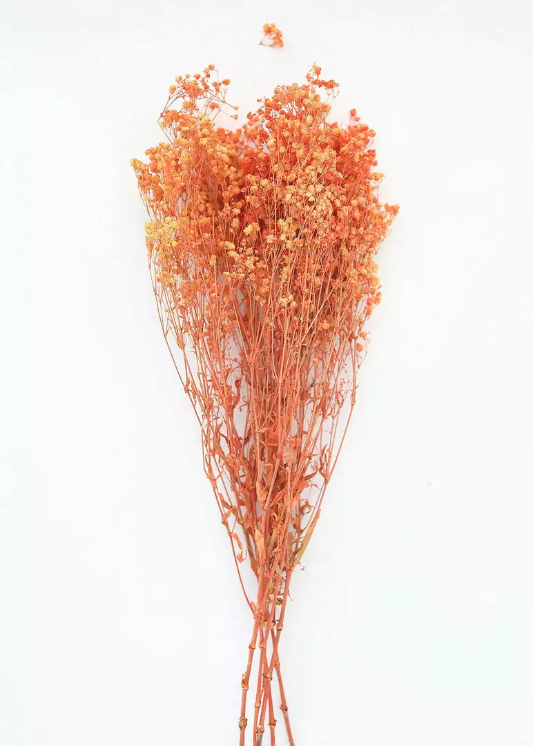 Find gypsophila dried flowers, like this bright and gorgeous orange preserved baby’s breath gyp. From bud vases to wedding flower bouquets, these everlasting blooms are a must to give your designs perfect pops of color.