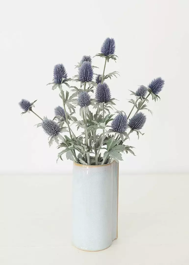 If you are going to make your own artificial fall wedding bouquet, be sure to include faux filler flowers for that extra detail. These stunning navy blue wildflower thistles will do the trick!