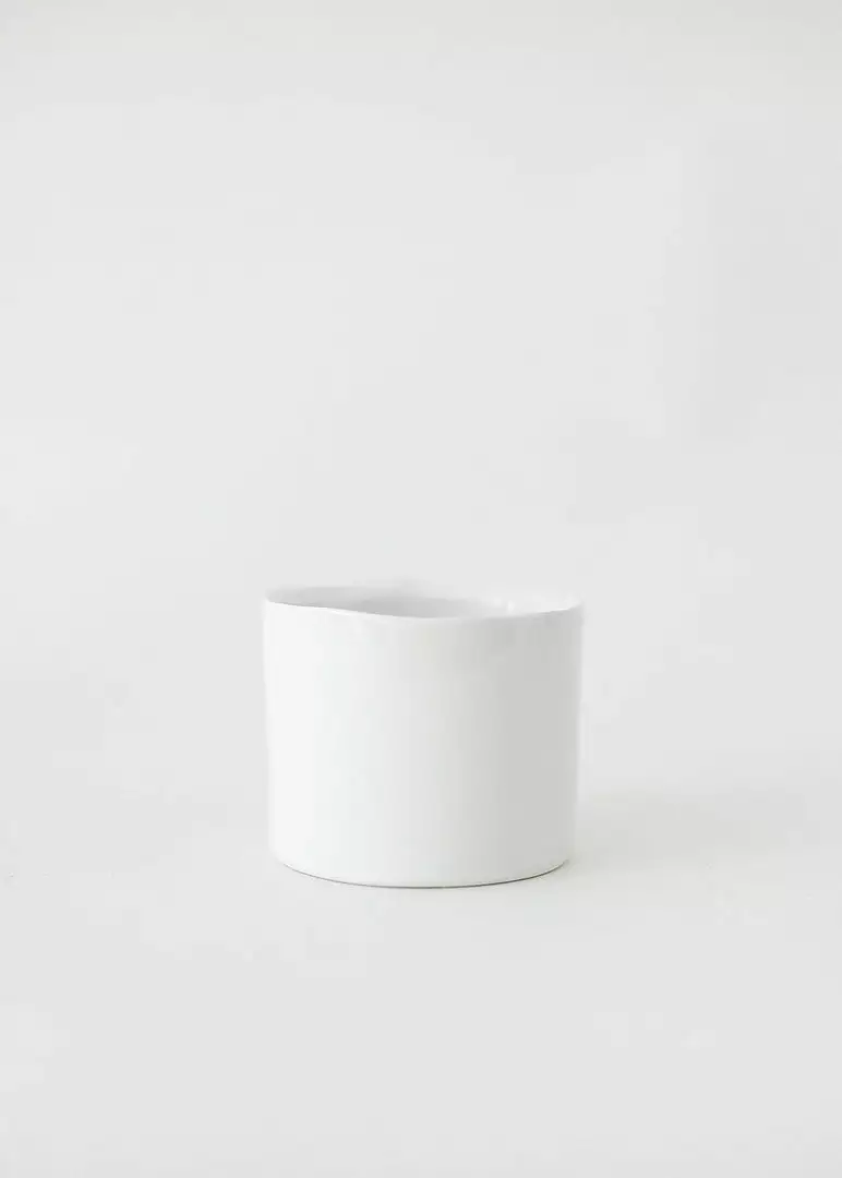 This simply classic white small, round ceramic vase from the Brooklyn Collection is ideal for clean, sophisticated styling and decor. You can fill it with a mini flower arrangement, or even use it as a votive candle holder for weddings.