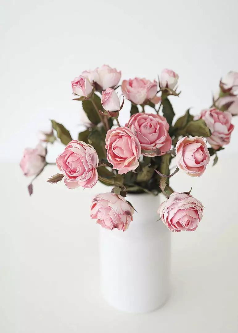 Find pink artificial flowers, like this pretty pink mauve silk rose spray. Whether you style these faux roses in vase arrangements or flower bouquets, they lend classic elegance to any floral design.
