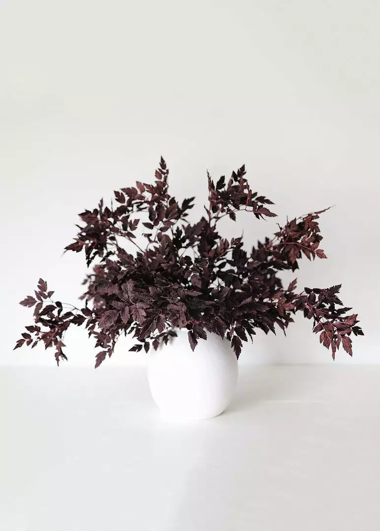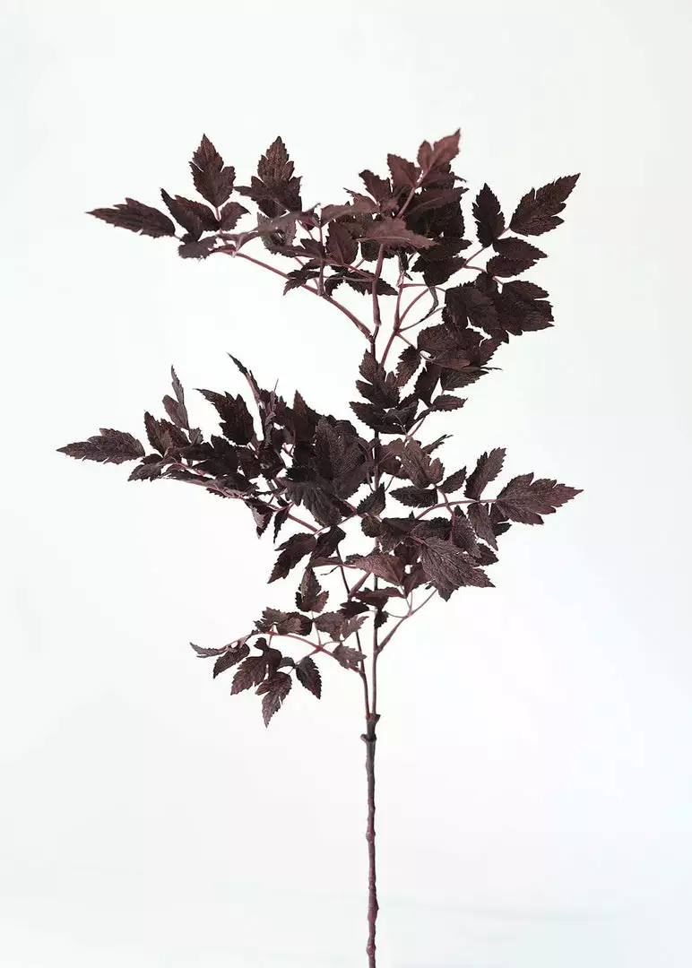 Bring the feeling of a crisp fall day into your home with these artificial Cimicifuga Ramosa leaves. The rich, deep plum purple hue makes this Hillside Black Beauty foliage a striking addition to your autumn wreaths and faux flower arrangements.