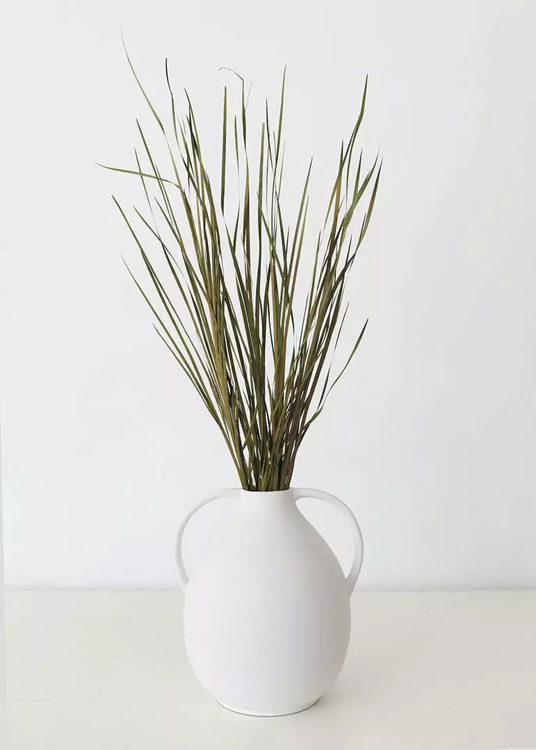 Minimalist dried floral styling calls for nature’s natural beauties. Simply arrange these green brown preserved wild grass stems in your floor vase for a striking design that perfectly showcases organic height and volume.