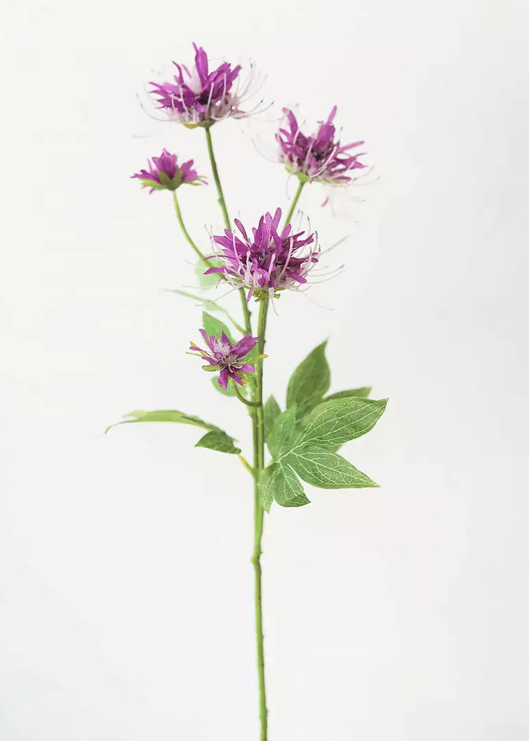 Find artificial flowers that pop, like this striking purple bee balm spray. The combination of vibrant color, visual texture, and whimsical vibes makes these fake wildflowers a unique choice for your floral arrangements.