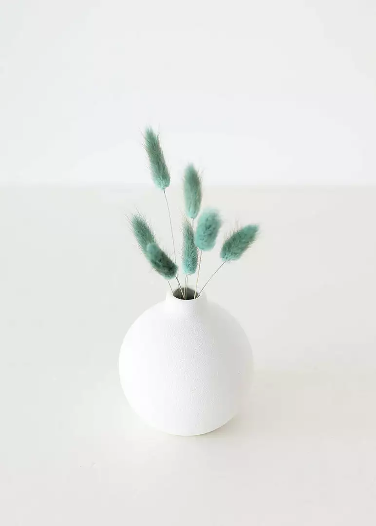 Dried florals perfectly bring the feeling of nature into your home. Style this gorgeous sea blue dried bunny tail grass in trendy bud vases to effortlessly create colorful shelf and table accents.
