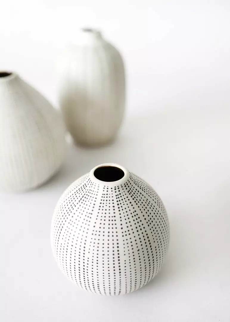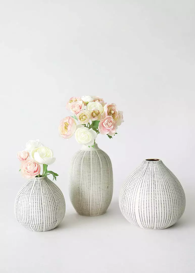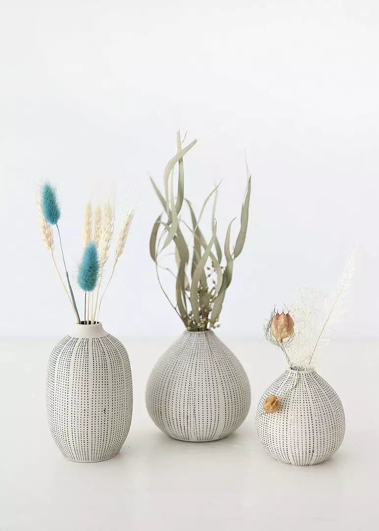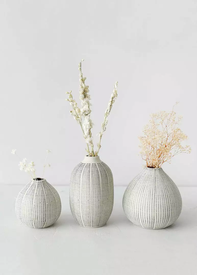 Textured stoneware bud vases in black and white are beautiful vessels for your favorite dried flower stems.