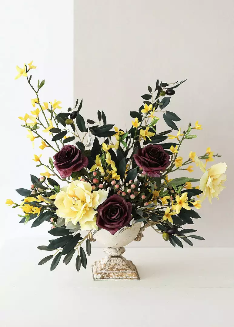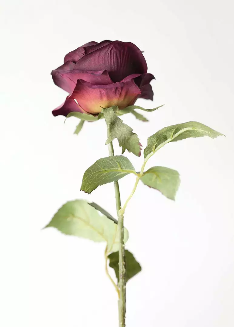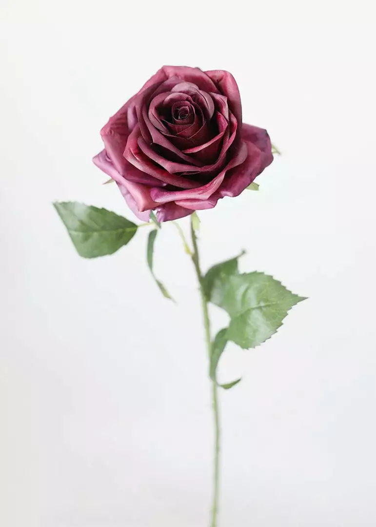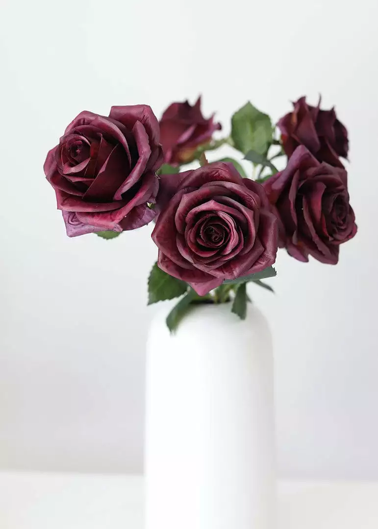 Add a touch of romance to your artificial flower bouquet with this silk rose spray in eggplant plum purple. With remarkably realistic petals and leaves, this fake flower looks anything but!
