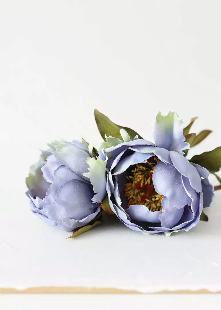 Find blue artificial wedding flowers, like this beautiful antique blue silk open peony with green highlights. Perfect for your spring flower bouquets or corsages.